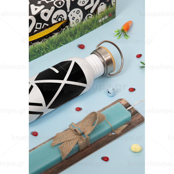 EXO Band korea, Πασχαλινή Λαμπάδα με παγούρι μεταλλικό (620ml, stainless steel) & κερί αρωματικό πλακέ (30cm) (ΤΙΡΚΟΥΑΖ)