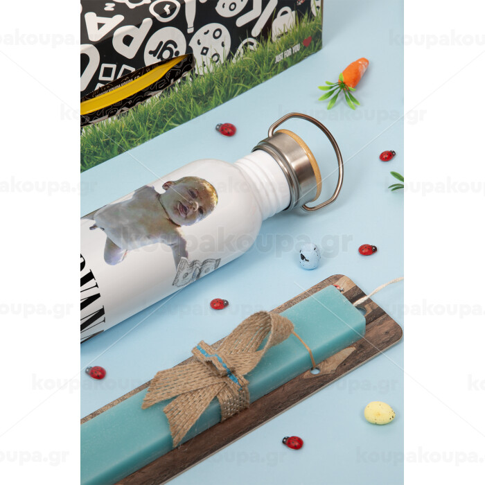 Nirvana nevermind, Πασχαλινή Λαμπάδα με παγούρι μεταλλικό (620ml, stainless steel) & κερί αρωματικό πλακέ (30cm) (ΤΙΡΚΟΥΑΖ)