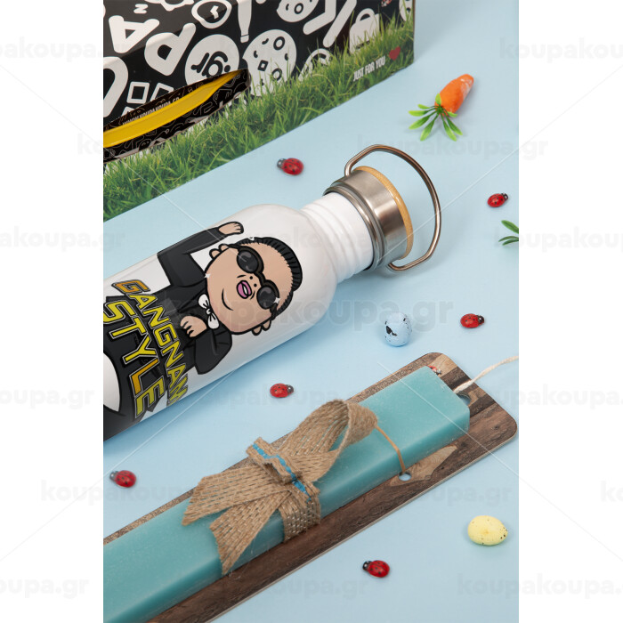 PSY - GANGNAM STYLE, Πασχαλινή Λαμπάδα με παγούρι μεταλλικό (620ml, stainless steel) & κερί αρωματικό πλακέ (30cm) (ΤΙΡΚΟΥΑΖ)