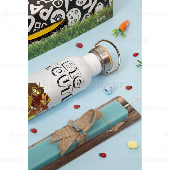 Big mouth, Πασχαλινή Λαμπάδα με παγούρι μεταλλικό (620ml, stainless steel) & κερί αρωματικό πλακέ (30cm) (ΤΙΡΚΟΥΑΖ)