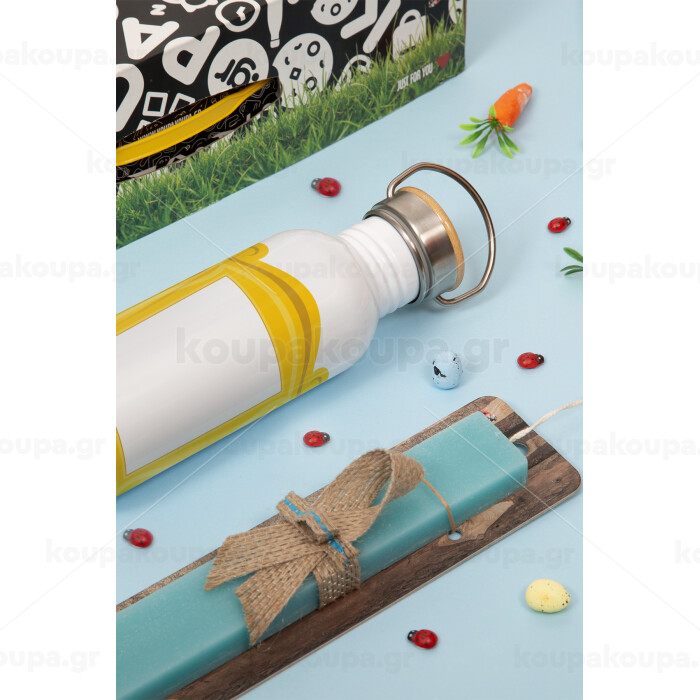 Friends frame, Πασχαλινή Λαμπάδα με παγούρι μεταλλικό (620ml, stainless steel) & κερί αρωματικό πλακέ (30cm) (ΤΙΡΚΟΥΑΖ)