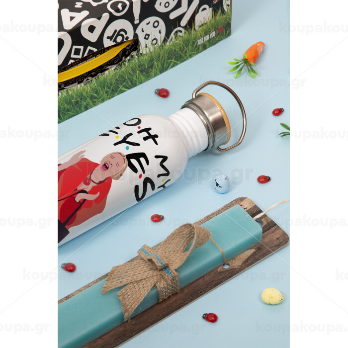 Friends,. oh my eyes Phoebe, Πασχαλινή Λαμπάδα με παγούρι μεταλλικό (620ml, stainless steel) & κερί αρωματικό πλακέ (30cm) (ΤΙΡΚΟΥΑΖ)