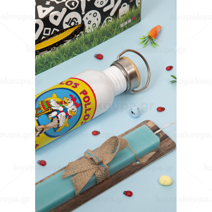 Los Pollos Hermanos, Πασχαλινή Λαμπάδα με παγούρι μεταλλικό (620ml, stainless steel) & κερί αρωματικό πλακέ (30cm) (ΤΙΡΚΟΥΑΖ)