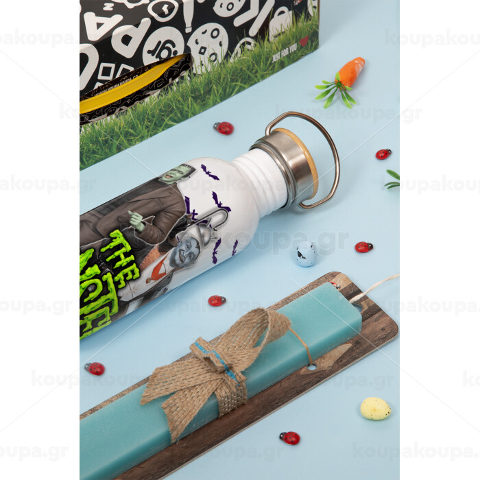 The munsters, Πασχαλινή Λαμπάδα με παγούρι μεταλλικό (620ml, stainless steel) & κερί αρωματικό πλακέ (30cm) (ΤΙΡΚΟΥΑΖ)