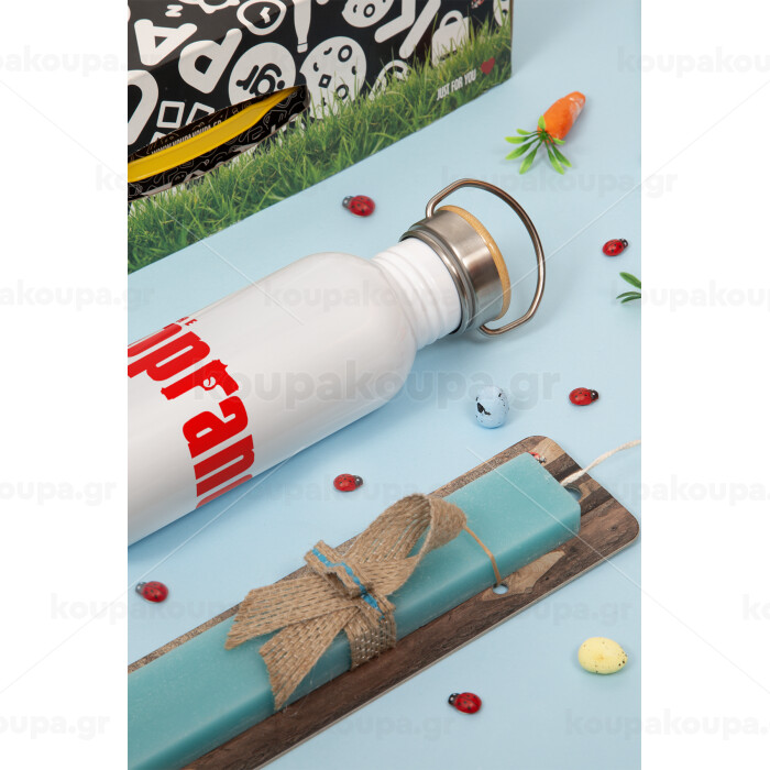 The Sopranos, Πασχαλινή Λαμπάδα με παγούρι μεταλλικό (620ml, stainless steel) & κερί αρωματικό πλακέ (30cm) (ΤΙΡΚΟΥΑΖ)
