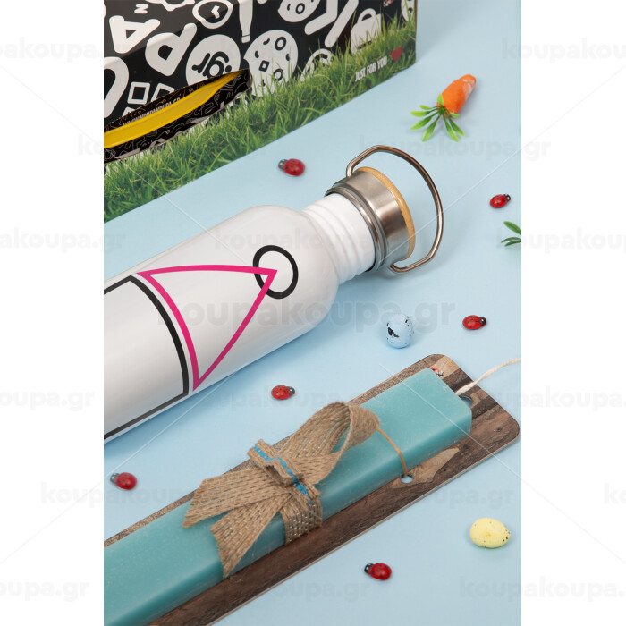 The squid game ojingeo, Πασχαλινή Λαμπάδα με παγούρι μεταλλικό (620ml, stainless steel) & κερί αρωματικό πλακέ (30cm) (ΤΙΡΚΟΥΑΖ)