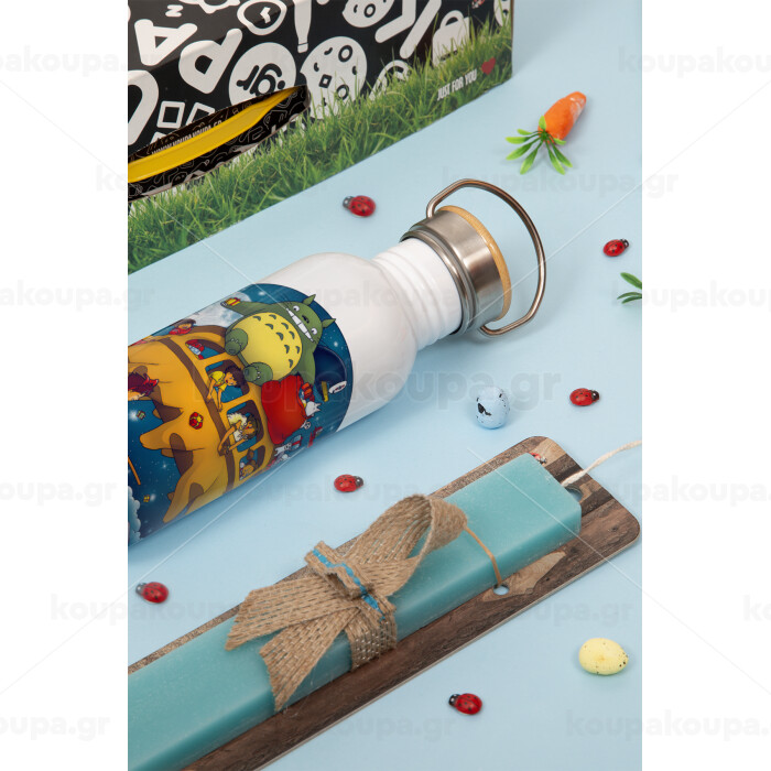 Totoro Catbus, Πασχαλινή Λαμπάδα με παγούρι μεταλλικό (620ml, stainless steel) & κερί αρωματικό πλακέ (30cm) (ΤΙΡΚΟΥΑΖ)