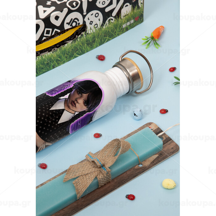 Wednesday moonlight, Πασχαλινή Λαμπάδα με παγούρι μεταλλικό (620ml, stainless steel) & κερί αρωματικό πλακέ (30cm) (ΤΙΡΚΟΥΑΖ)