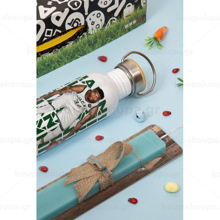 Γιάννης Αντετοκούνμπο, Πασχαλινή Λαμπάδα με παγούρι μεταλλικό (620ml, stainless steel) & κερί αρωματικό πλακέ (30cm) (ΤΙΡΚΟΥΑΖ)