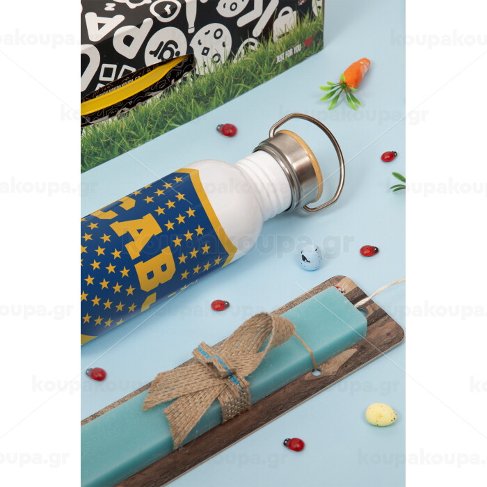 Club Atlético Boca Juniors, Πασχαλινή Λαμπάδα με παγούρι μεταλλικό (620ml, stainless steel) & κερί αρωματικό πλακέ (30cm) (ΤΙΡΚΟΥΑΖ)