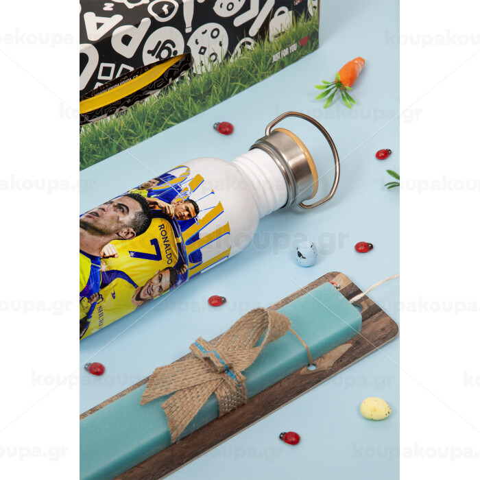Cristiano Ronaldo Al Nassr, Πασχαλινή Λαμπάδα με παγούρι μεταλλικό (620ml, stainless steel) & κερί αρωματικό πλακέ (30cm) (ΤΙΡΚΟΥΑΖ)