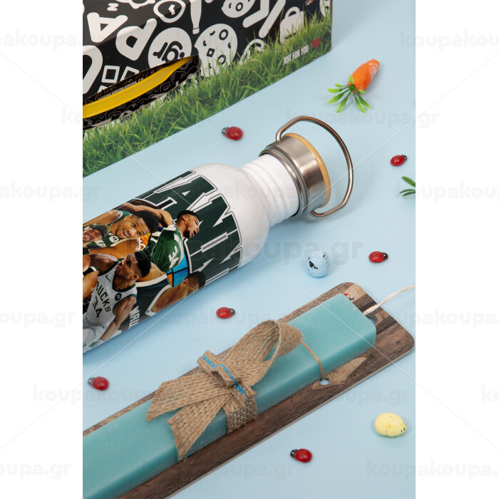 Giannis Antetokounmpo, Πασχαλινή Λαμπάδα με παγούρι μεταλλικό (620ml, stainless steel) & κερί αρωματικό πλακέ (30cm) (ΤΙΡΚΟΥΑΖ)