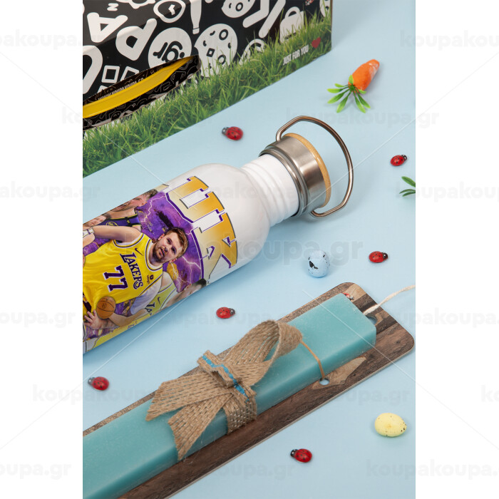 Luka Doncic Basketball , Πασχαλινή Λαμπάδα με παγούρι μεταλλικό (620ml, stainless steel) & κερί αρωματικό πλακέ (30cm) (ΤΙΡΚΟΥΑΖ)
