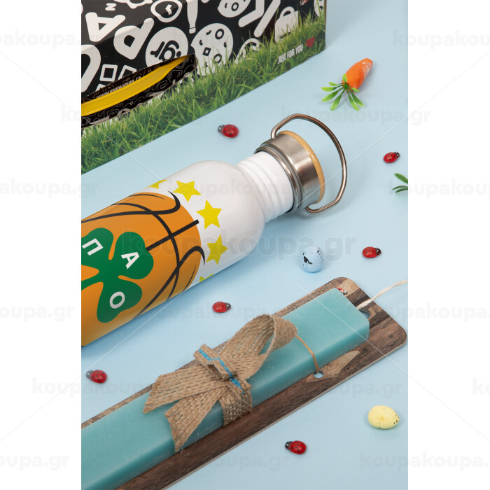 ΠΑΟ BC, Πασχαλινή Λαμπάδα με παγούρι μεταλλικό (620ml, stainless steel) & κερί αρωματικό πλακέ (30cm) (ΤΙΡΚΟΥΑΖ)