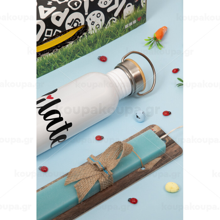 Pilates love, Πασχαλινή Λαμπάδα με παγούρι μεταλλικό (620ml, stainless steel) & κερί αρωματικό πλακέ (30cm) (ΤΙΡΚΟΥΑΖ)