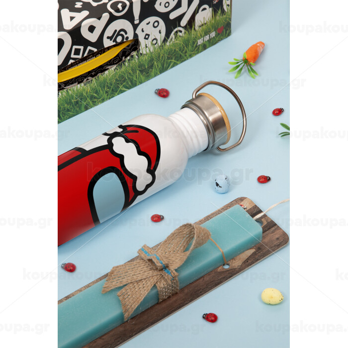 Among US Santa, Πασχαλινή Λαμπάδα με παγούρι μεταλλικό (620ml, stainless steel) & κερί αρωματικό πλακέ (30cm) (ΤΙΡΚΟΥΑΖ)