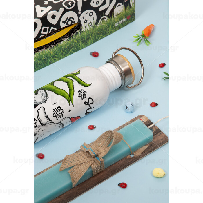 Christmas Meme SIX SEVEN (67), Πασχαλινή Λαμπάδα με παγούρι μεταλλικό (620ml, stainless steel) & κερί αρωματικό πλακέ (30cm) (ΤΙΡΚΟΥΑΖ)