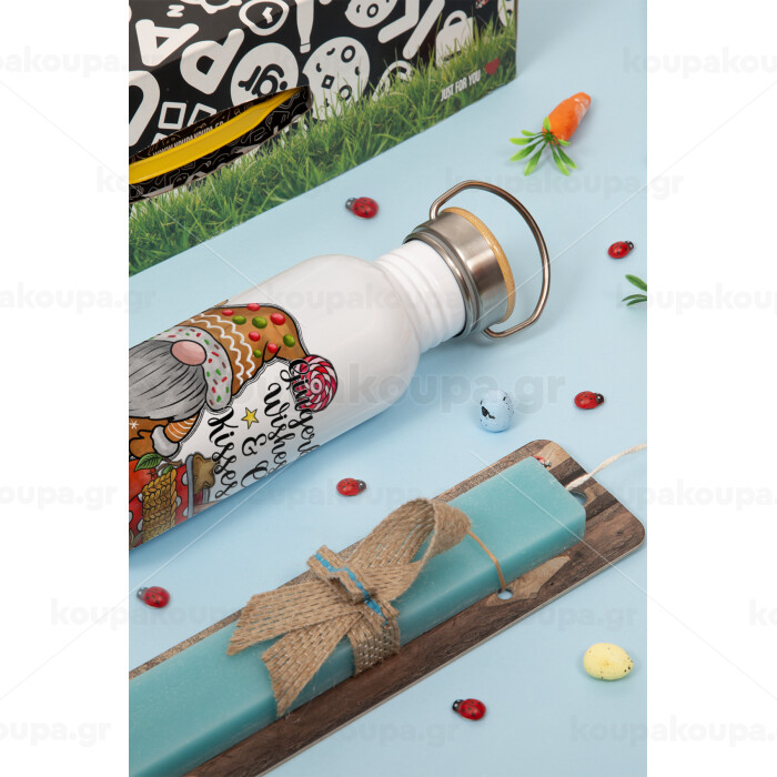 Gingerbread Wishes, Πασχαλινή Λαμπάδα με παγούρι μεταλλικό (620ml, stainless steel) & κερί αρωματικό πλακέ (30cm) (ΤΙΡΚΟΥΑΖ)