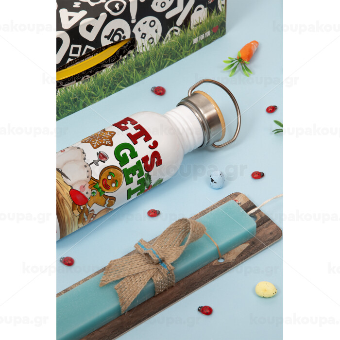 Let's get baked, Πασχαλινή Λαμπάδα με παγούρι μεταλλικό (620ml, stainless steel) & κερί αρωματικό πλακέ (30cm) (ΤΙΡΚΟΥΑΖ)