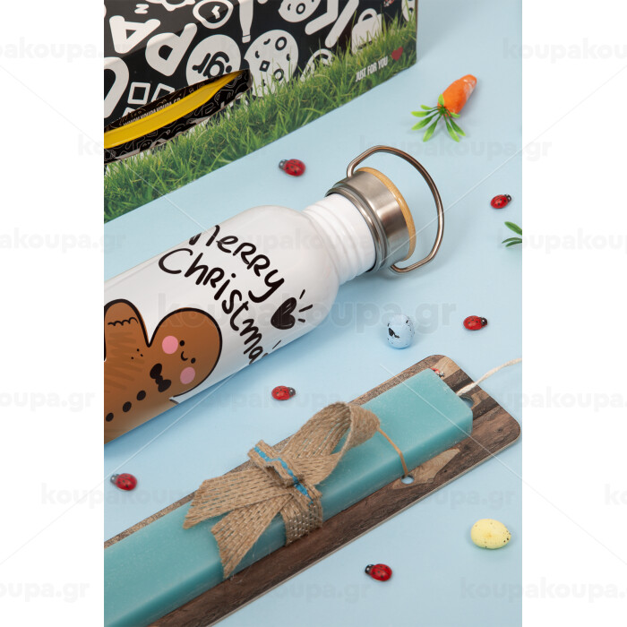 mr gingerbread, Πασχαλινή Λαμπάδα με παγούρι μεταλλικό (620ml, stainless steel) & κερί αρωματικό πλακέ (30cm) (ΤΙΡΚΟΥΑΖ)