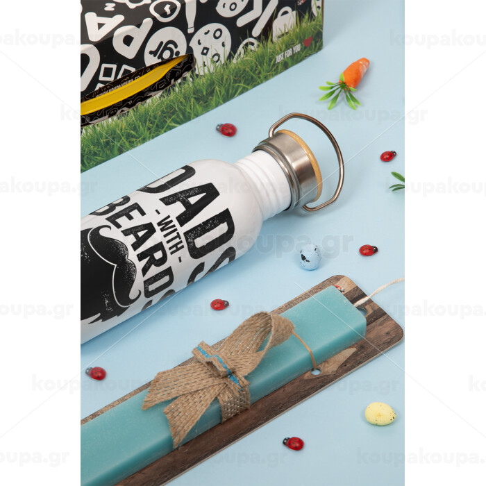 Dad's with beards are better, Πασχαλινή Λαμπάδα με παγούρι μεταλλικό (620ml, stainless steel) & κερί αρωματικό πλακέ (30cm) (ΤΙΡΚΟΥΑΖ)