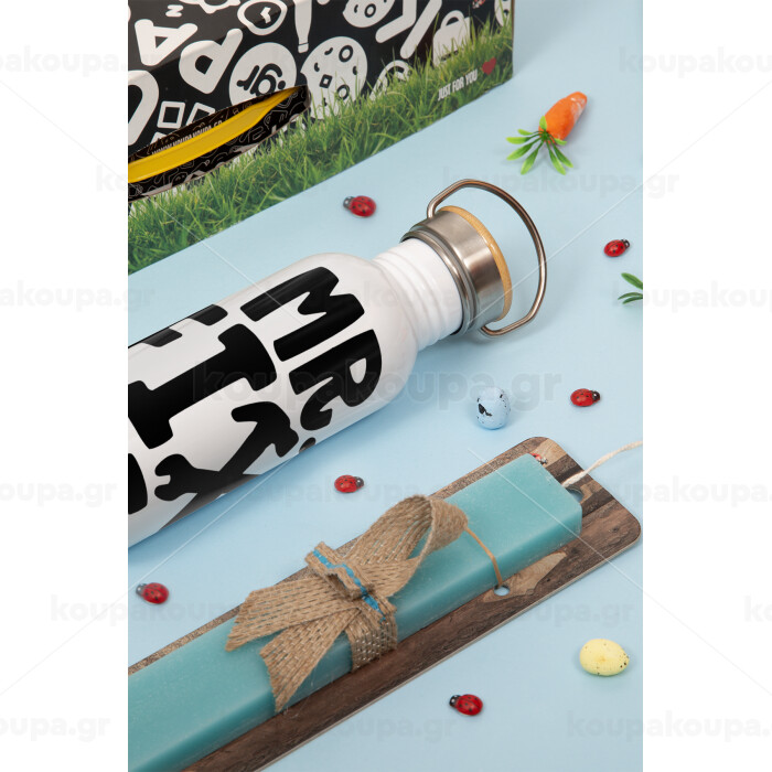 Mr fix it, Πασχαλινή Λαμπάδα με παγούρι μεταλλικό (620ml, stainless steel) & κερί αρωματικό πλακέ (30cm) (ΤΙΡΚΟΥΑΖ)