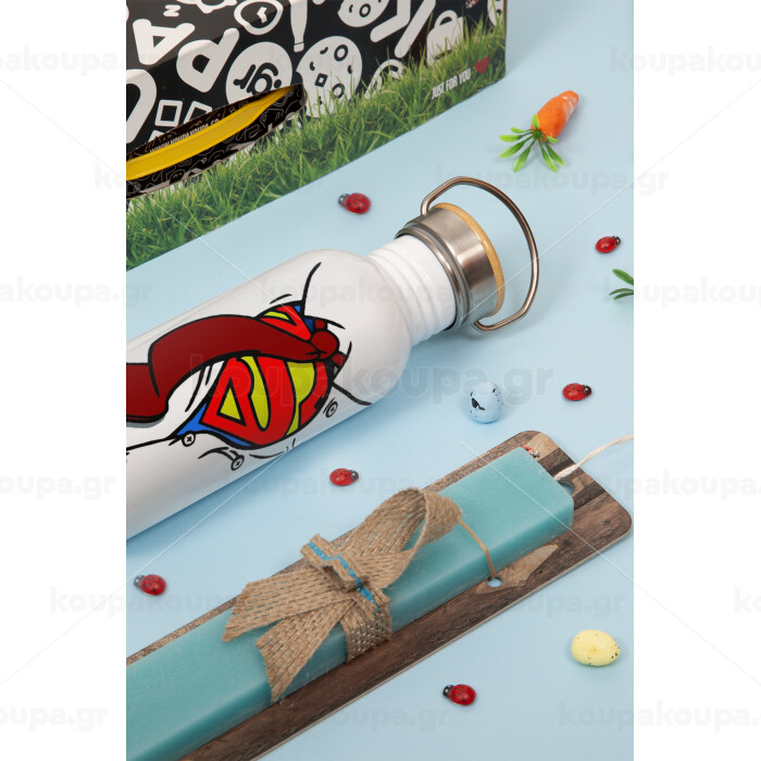 SuperDad, Πασχαλινή Λαμπάδα με παγούρι μεταλλικό (620ml, stainless steel) & κερί αρωματικό πλακέ (30cm) (ΤΙΡΚΟΥΑΖ)