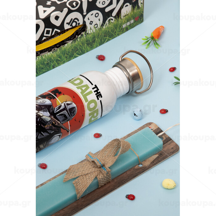 The Dadalorian, Πασχαλινή Λαμπάδα με παγούρι μεταλλικό (620ml, stainless steel) & κερί αρωματικό πλακέ (30cm) (ΤΙΡΚΟΥΑΖ)
