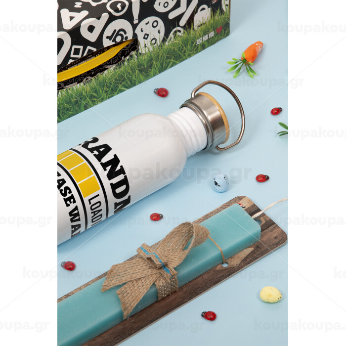 Grandma Loading, Πασχαλινή Λαμπάδα με παγούρι μεταλλικό (620ml, stainless steel) & κερί αρωματικό πλακέ (30cm) (ΤΙΡΚΟΥΑΖ)