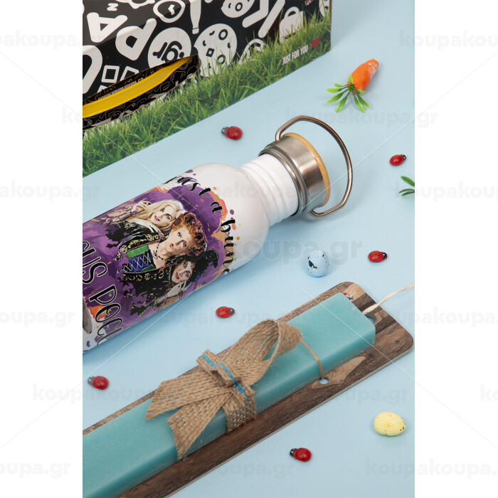 Hocus Pocus, Πασχαλινή Λαμπάδα με παγούρι μεταλλικό (620ml, stainless steel) & κερί αρωματικό πλακέ (30cm) (ΤΙΡΚΟΥΑΖ)