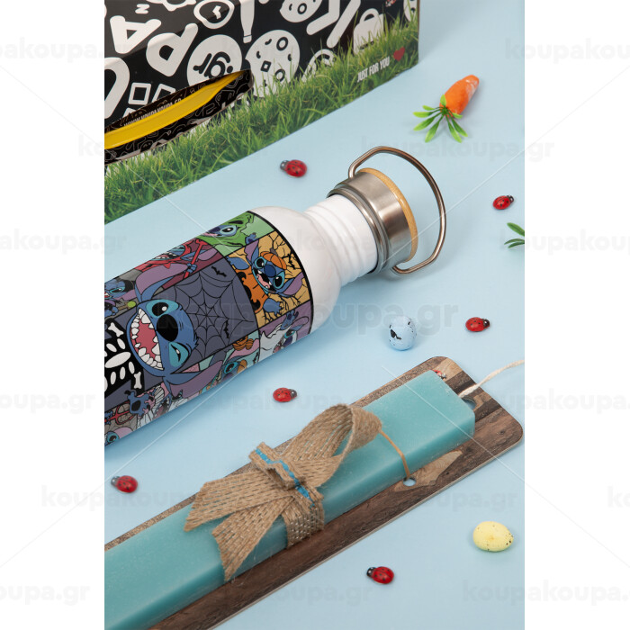 Stitch Halloween, Πασχαλινή Λαμπάδα με παγούρι μεταλλικό (620ml, stainless steel) & κερί αρωματικό πλακέ (30cm) (ΤΙΡΚΟΥΑΖ)