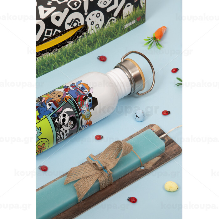 Stitch Halloween scooby car, Πασχαλινή Λαμπάδα με παγούρι μεταλλικό (620ml, stainless steel) & κερί αρωματικό πλακέ (30cm) (ΤΙΡΚΟΥΑΖ)
