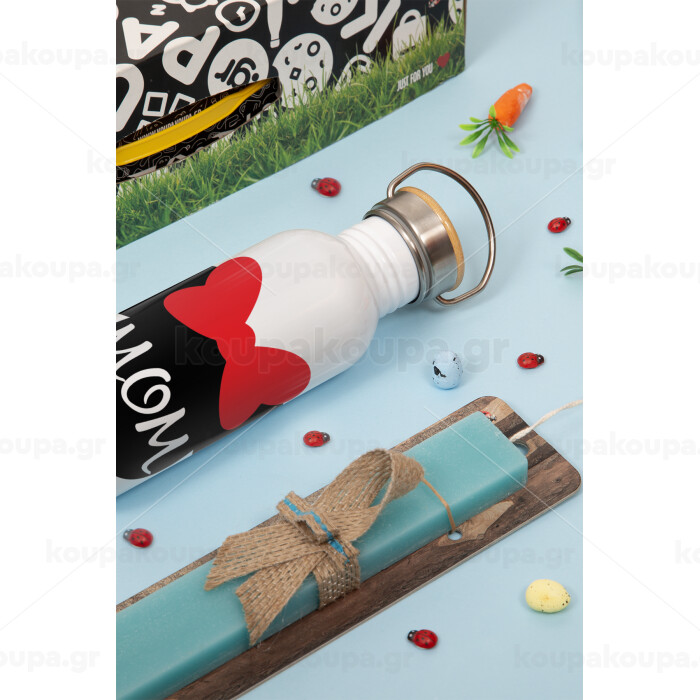mini mom, Πασχαλινή Λαμπάδα με παγούρι μεταλλικό (620ml, stainless steel) & κερί αρωματικό πλακέ (30cm) (ΤΙΡΚΟΥΑΖ)