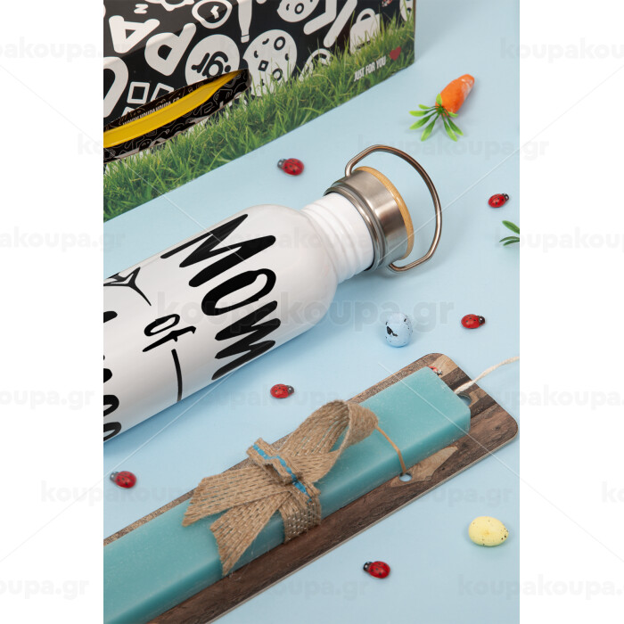 Mom of three, Πασχαλινή Λαμπάδα με παγούρι μεταλλικό (620ml, stainless steel) & κερί αρωματικό πλακέ (30cm) (ΤΙΡΚΟΥΑΖ)
