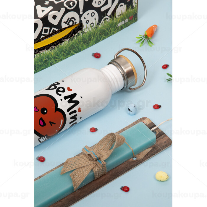 Be mine!, Πασχαλινή Λαμπάδα με παγούρι μεταλλικό (620ml, stainless steel) & κερί αρωματικό πλακέ (30cm) (ΤΙΡΚΟΥΑΖ)