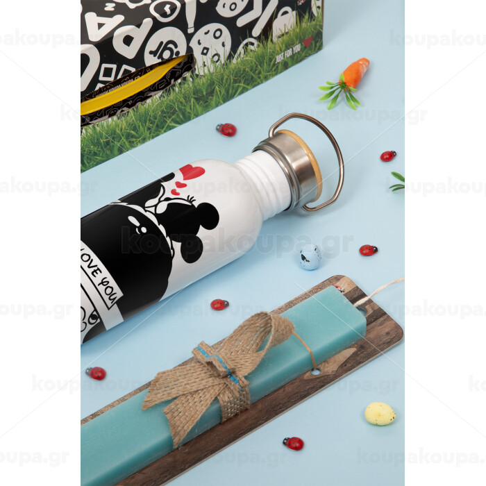 Love Car, Πασχαλινή Λαμπάδα με παγούρι μεταλλικό Ασημένιο αλουμινίου (500ml) & κερί αρωματικό πλακέ (30cm) (ΤΙΡΚΟΥΑΖ)