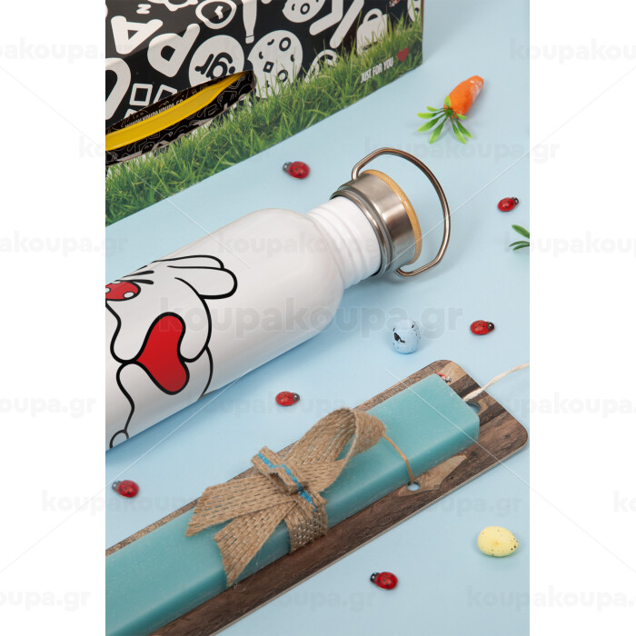 Love hands, Πασχαλινή Λαμπάδα με παγούρι μεταλλικό Ασημένιο αλουμινίου (500ml) & κερί αρωματικό πλακέ (30cm) (ΤΙΡΚΟΥΑΖ)