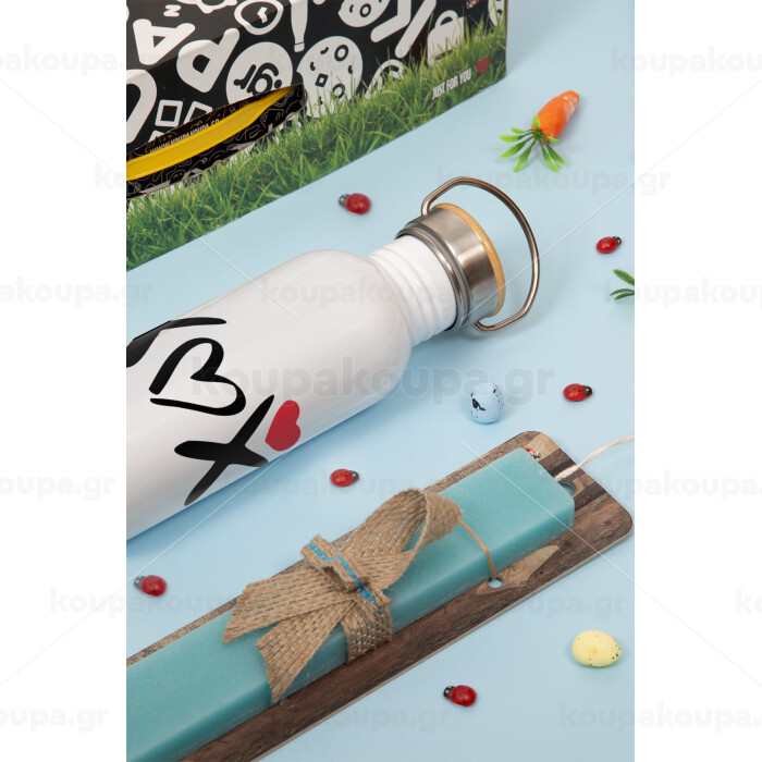xoxo, Πασχαλινή Λαμπάδα με παγούρι μεταλλικό Ασημένιο αλουμινίου (500ml) & κερί αρωματικό πλακέ (30cm) (ΤΙΡΚΟΥΑΖ)