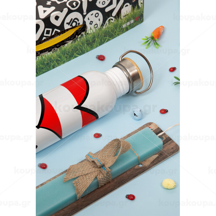 Austria flag, Πασχαλινή Λαμπάδα με παγούρι μεταλλικό (620ml, stainless steel) & κερί αρωματικό πλακέ (30cm) (ΤΙΡΚΟΥΑΖ)