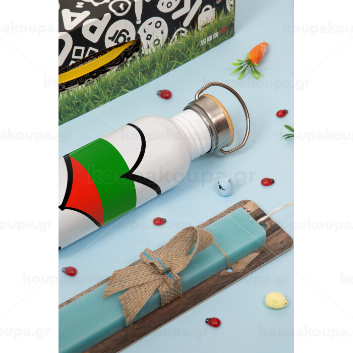 Bulgaria flag, Πασχαλινή Λαμπάδα με παγούρι μεταλλικό (620ml, stainless steel) & κερί αρωματικό πλακέ (30cm) (ΤΙΡΚΟΥΑΖ)