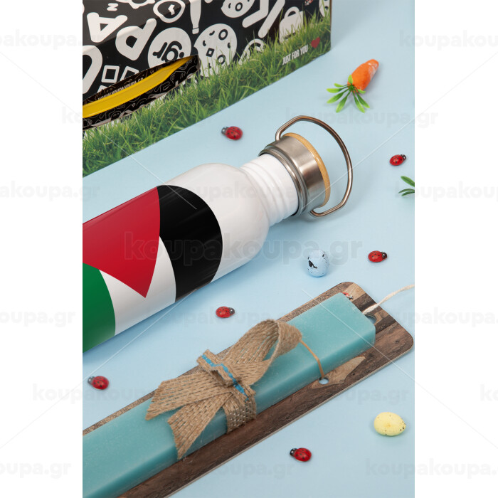 Σημαία Παλαιστίνης, Πασχαλινή Λαμπάδα με παγούρι μεταλλικό (620ml, stainless steel) & κερί αρωματικό πλακέ (30cm) (ΤΙΡΚΟΥΑΖ)