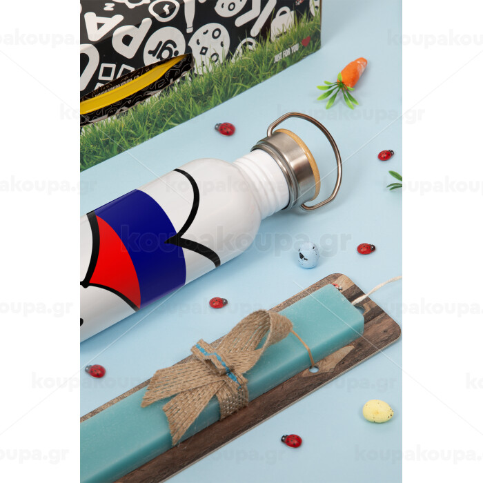 Russia flag, Πασχαλινή Λαμπάδα με παγούρι μεταλλικό (620ml, stainless steel) & κερί αρωματικό πλακέ (30cm) (ΤΙΡΚΟΥΑΖ)