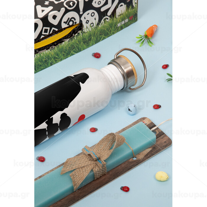 Daddy's princess, Πασχαλινή Λαμπάδα με παγούρι μεταλλικό (620ml, stainless steel) & κερί αρωματικό πλακέ (30cm) (ΤΙΡΚΟΥΑΖ)