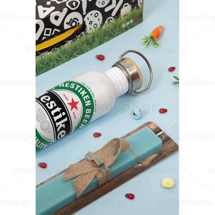 Hestiken Beer, Πασχαλινή Λαμπάδα με παγούρι μεταλλικό (620ml, stainless steel) & κερί αρωματικό πλακέ (30cm) (ΤΙΡΚΟΥΑΖ)