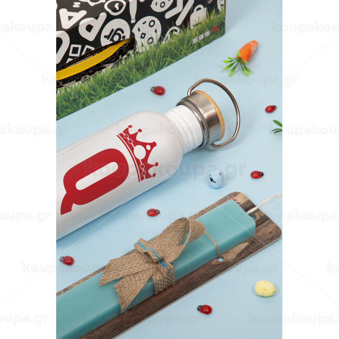 Queen, Πασχαλινή Λαμπάδα με παγούρι μεταλλικό (620ml, stainless steel) & κερί αρωματικό πλακέ (30cm) (ΤΙΡΚΟΥΑΖ)