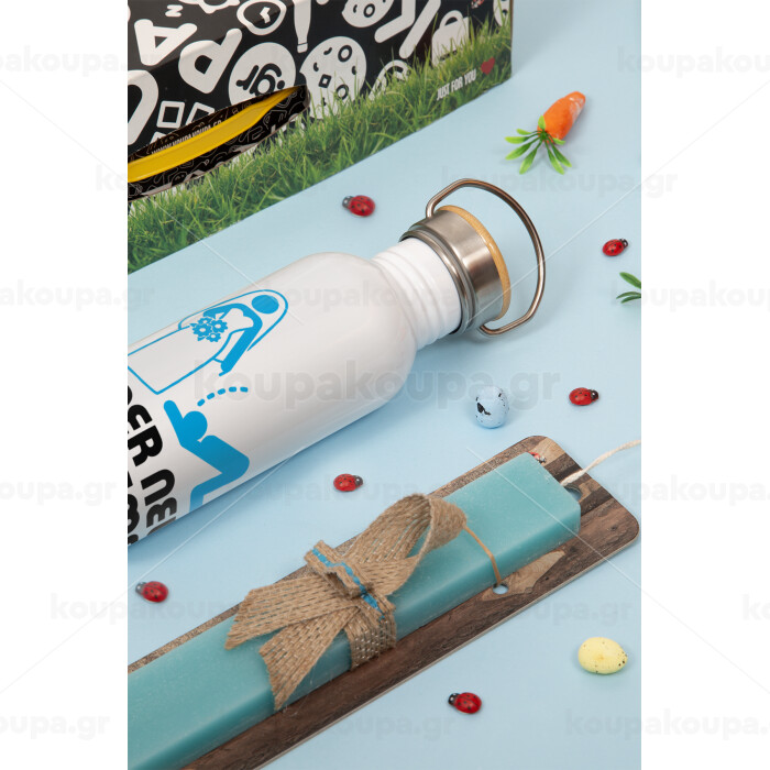 Under new Management, Πασχαλινή Λαμπάδα με παγούρι μεταλλικό (620ml, stainless steel) & κερί αρωματικό πλακέ (30cm) (ΤΙΡΚΟΥΑΖ)