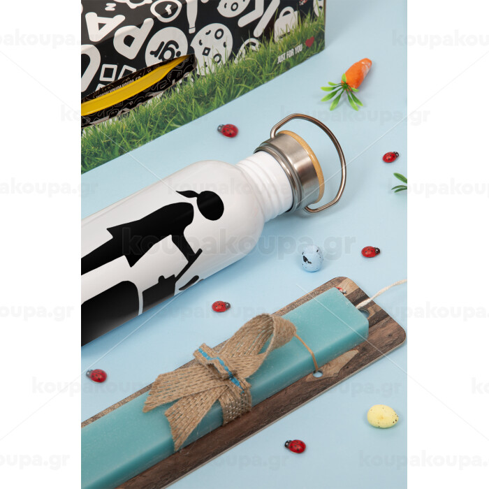 Woman Game Over, Πασχαλινή Λαμπάδα με παγούρι μεταλλικό (620ml, stainless steel) & κερί αρωματικό πλακέ (30cm) (ΤΙΡΚΟΥΑΖ)