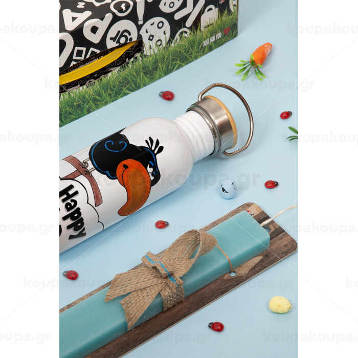 Happy Bird Day, Πασχαλινή Λαμπάδα με παγούρι μεταλλικό (620ml, stainless steel) & κερί αρωματικό πλακέ (30cm) (ΤΙΡΚΟΥΑΖ)