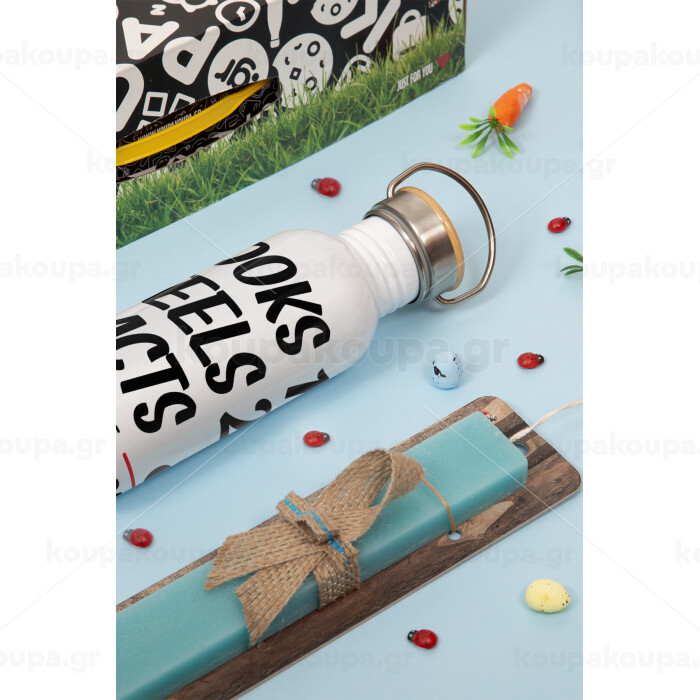 Looks, feels, acts LIKE your AGE, Πασχαλινή Λαμπάδα με παγούρι μεταλλικό (620ml, stainless steel) & κερί αρωματικό πλακέ (30cm) (ΤΙΡΚΟΥΑΖ)