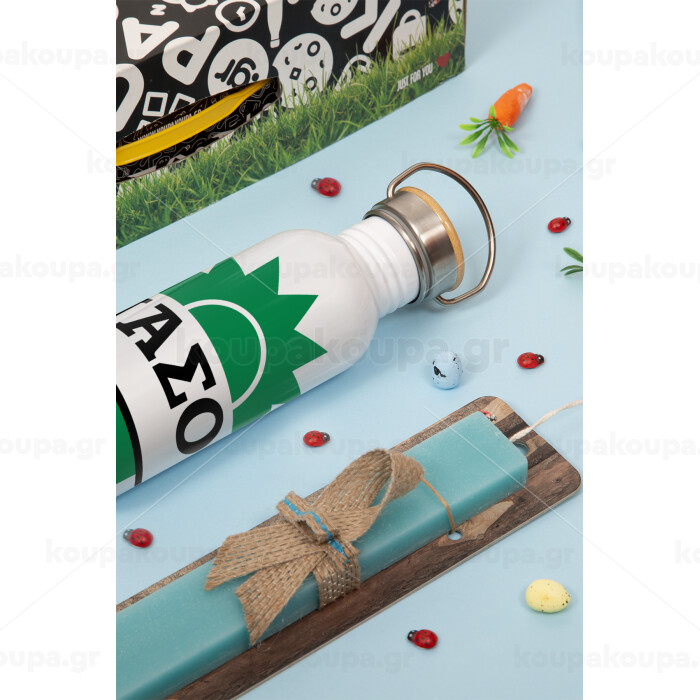 ΠΑΣΟΚ Loading, Πασχαλινή Λαμπάδα με παγούρι μεταλλικό (620ml, stainless steel) & κερί αρωματικό πλακέ (30cm) (ΤΙΡΚΟΥΑΖ)